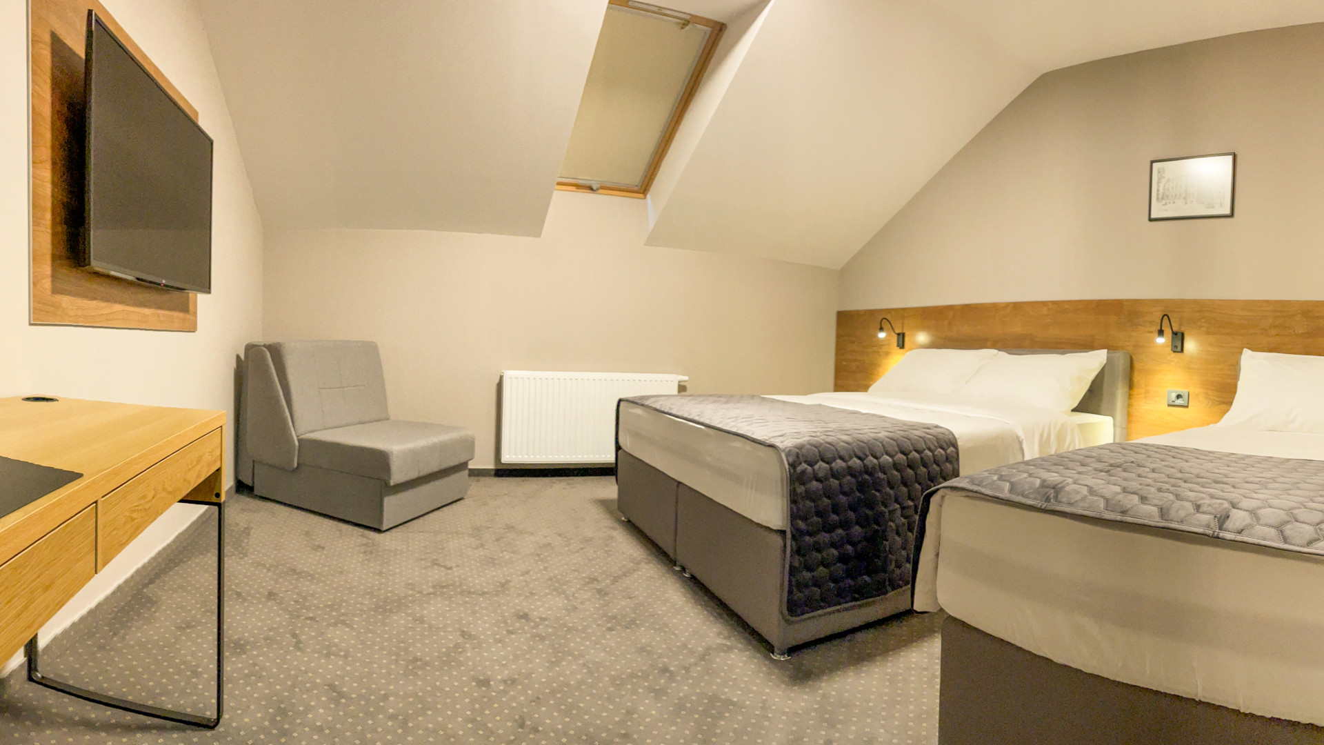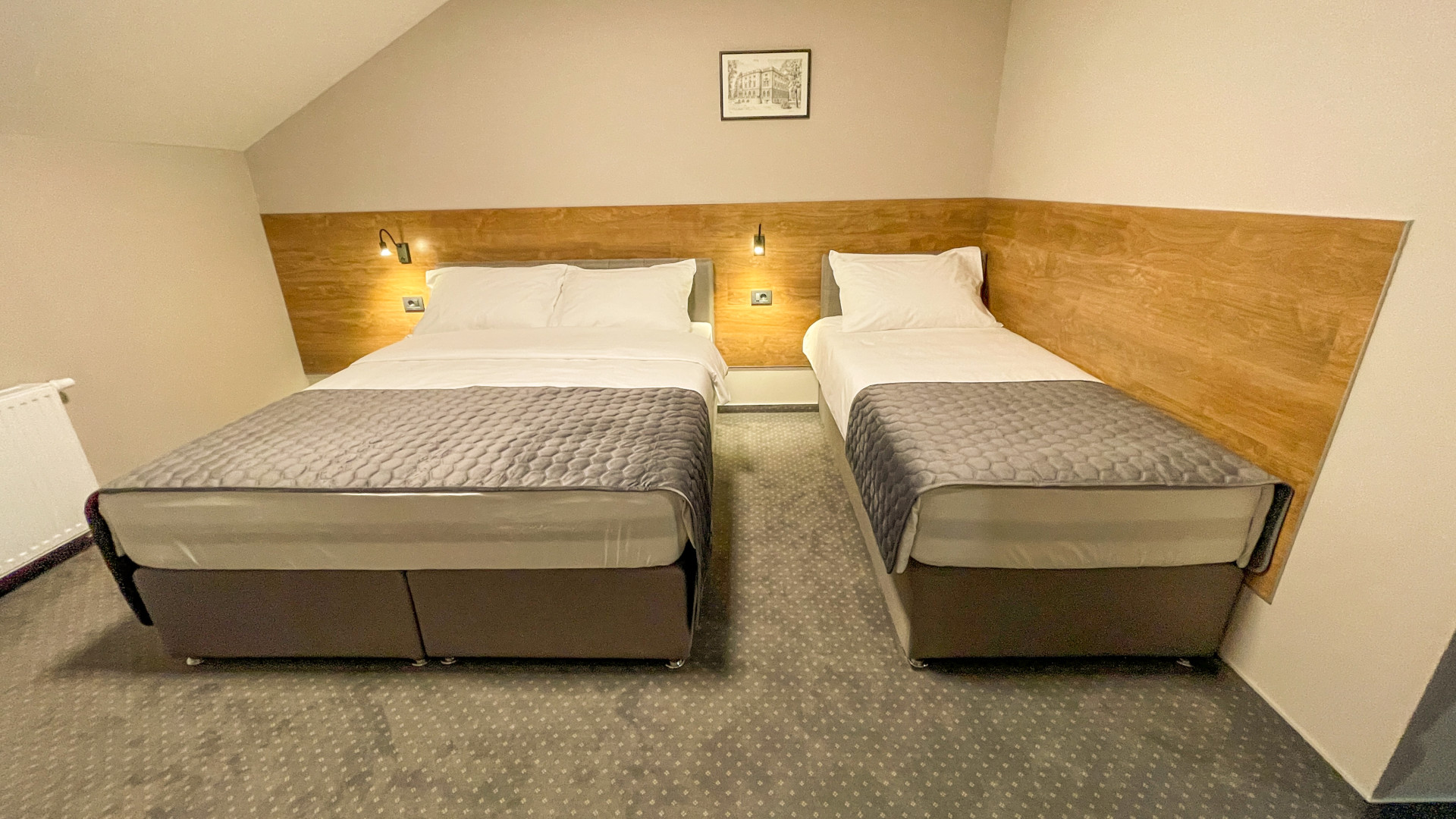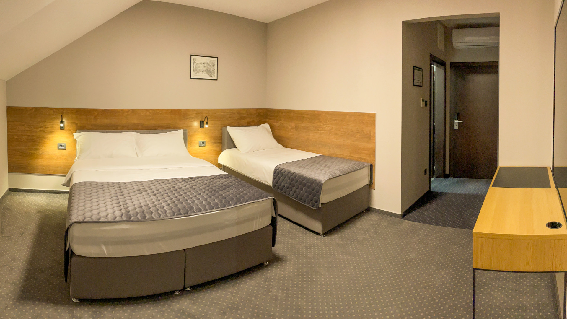 Triple soba s 1 bračnim krevetom i jednim single krevetom.